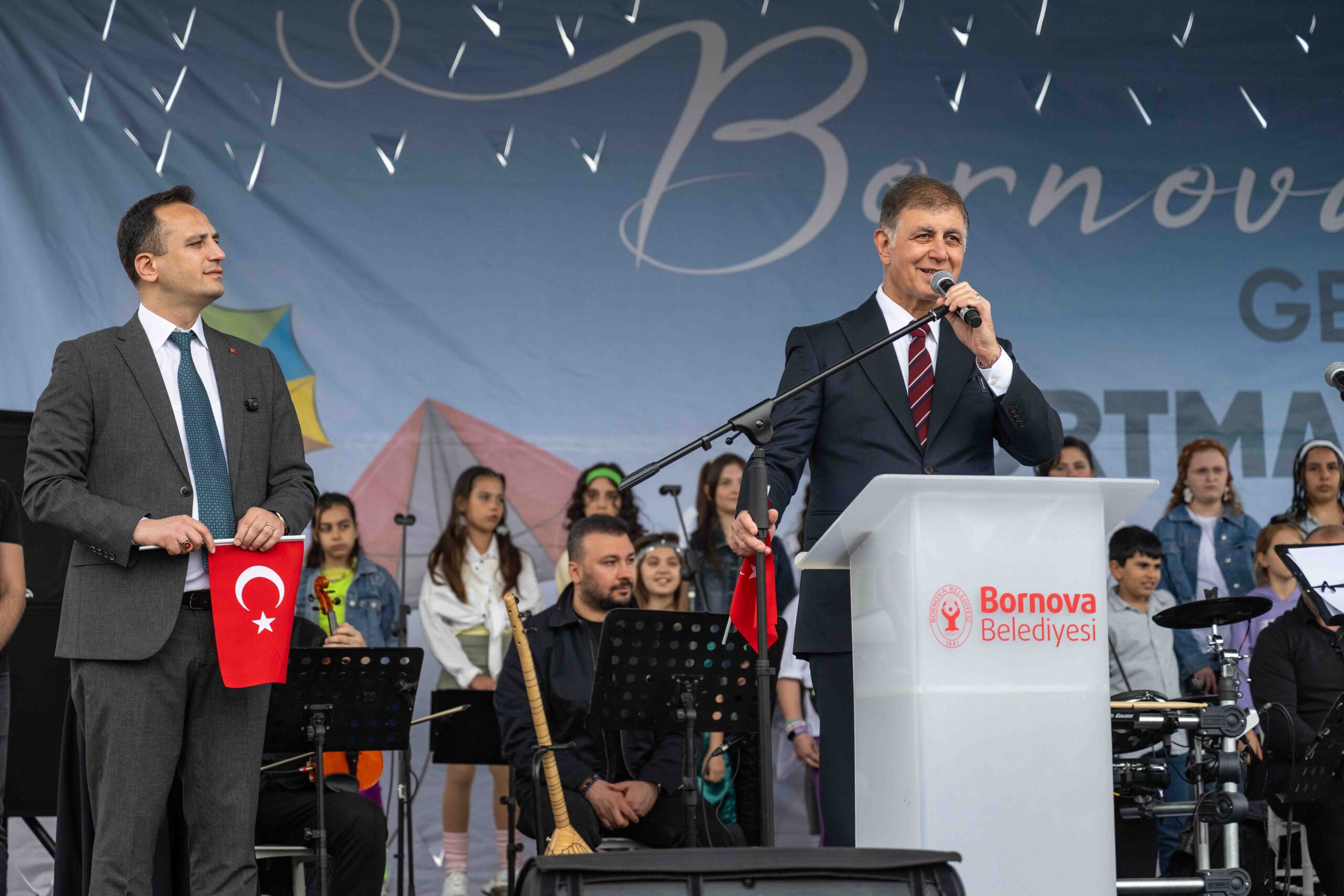 Bornova Belediye Başkanı Ömer Eşki’nin ev sahipliğinde gerçekleşen etkinliğe, İzmir Büyükşehir Belediye Başkanı Cemil Tugay da katılarak bu büyük buluşmada yer aldı. Şenlikte, Kahramanmaraş’ta yaşanan okul saldırısında hayatını kaybeden öğretmen ve çocuklar unutulmadı; anılarına gökyüzüne siyah balonlar bırakıldı. Ardından iki başkan, Bornova Belediyesi Çocuk Korosu ile birlikte İzmir Marşı’nı seslendirerek alandaki coşkuyu zirveye taşıdı.
